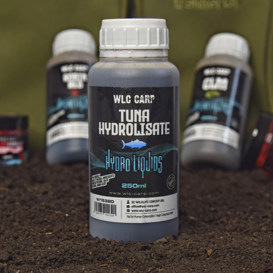 Ez egy tonhalból kivont hidrolizált folyadék, szardínia és tonhal illatával, sötétbarna színű, magas állati fehérje tartalommal, B-vitaminnal, esszenciális aminosavakkal és vasban gazdag, különleges szerepet játszik a pontyok vonzásában és emésztésében. 32-35%-os fehérjetartalommal rendelkezik, 100%-ban oldódik vízben, és felhasználható horog bojlik dipelésére vagy elkészítésükhöz, valamint etetőanyagban vagy PVA mixek elkészítéséhez. Etetőanyaghoz, feeder etetőanyaghoz vagy PVA mixekhez 20-40 ml/kg mix adagolását ajánljuk. A tonhal hidrolizátuma kiváló minőségű összetevő a pontyok, különösen a nagy pontyok számára.